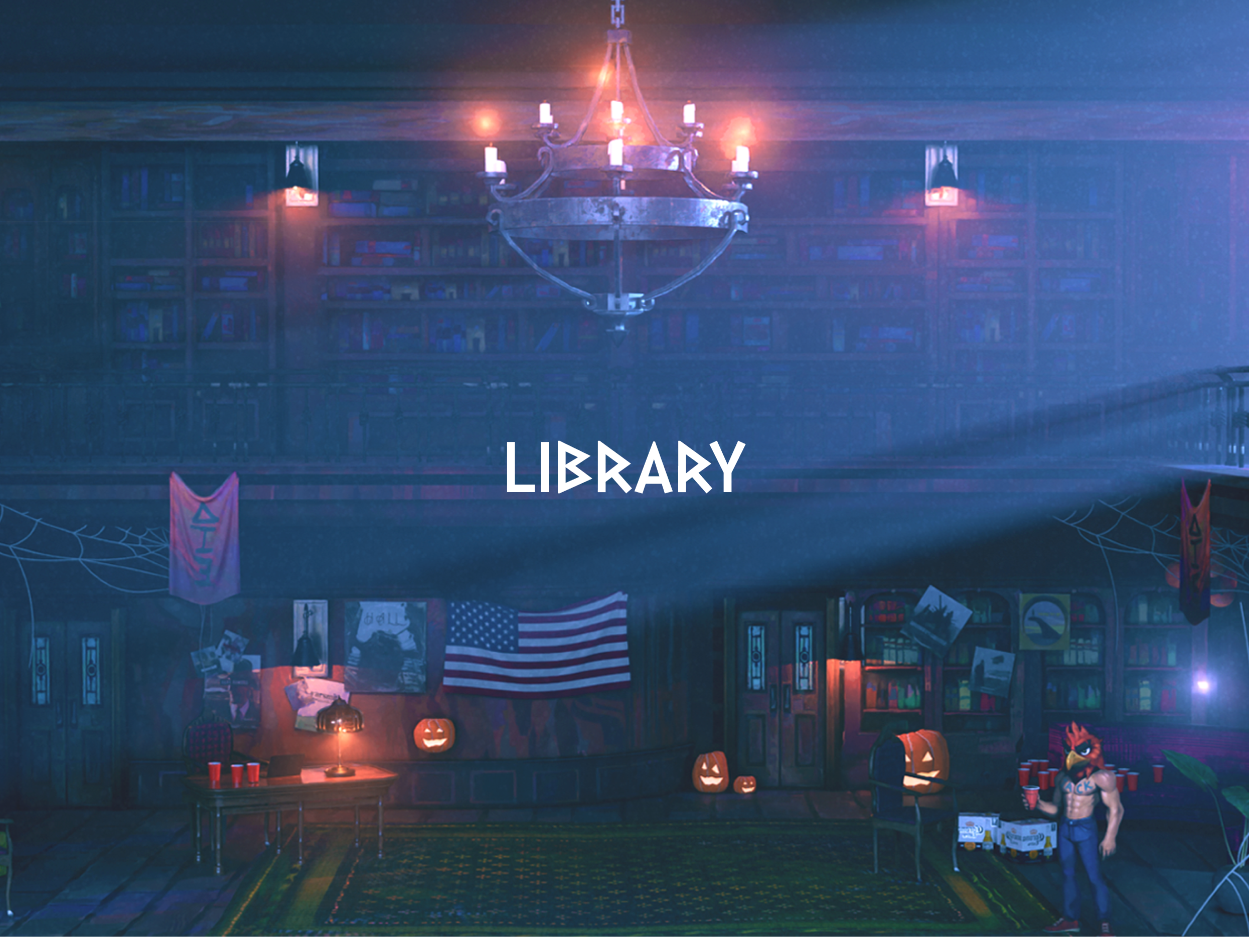 Ragnarok Gold Rush Party Entrance Party Room Frat House Bathroom Library Kitchen Bedroom Storage Room Basement